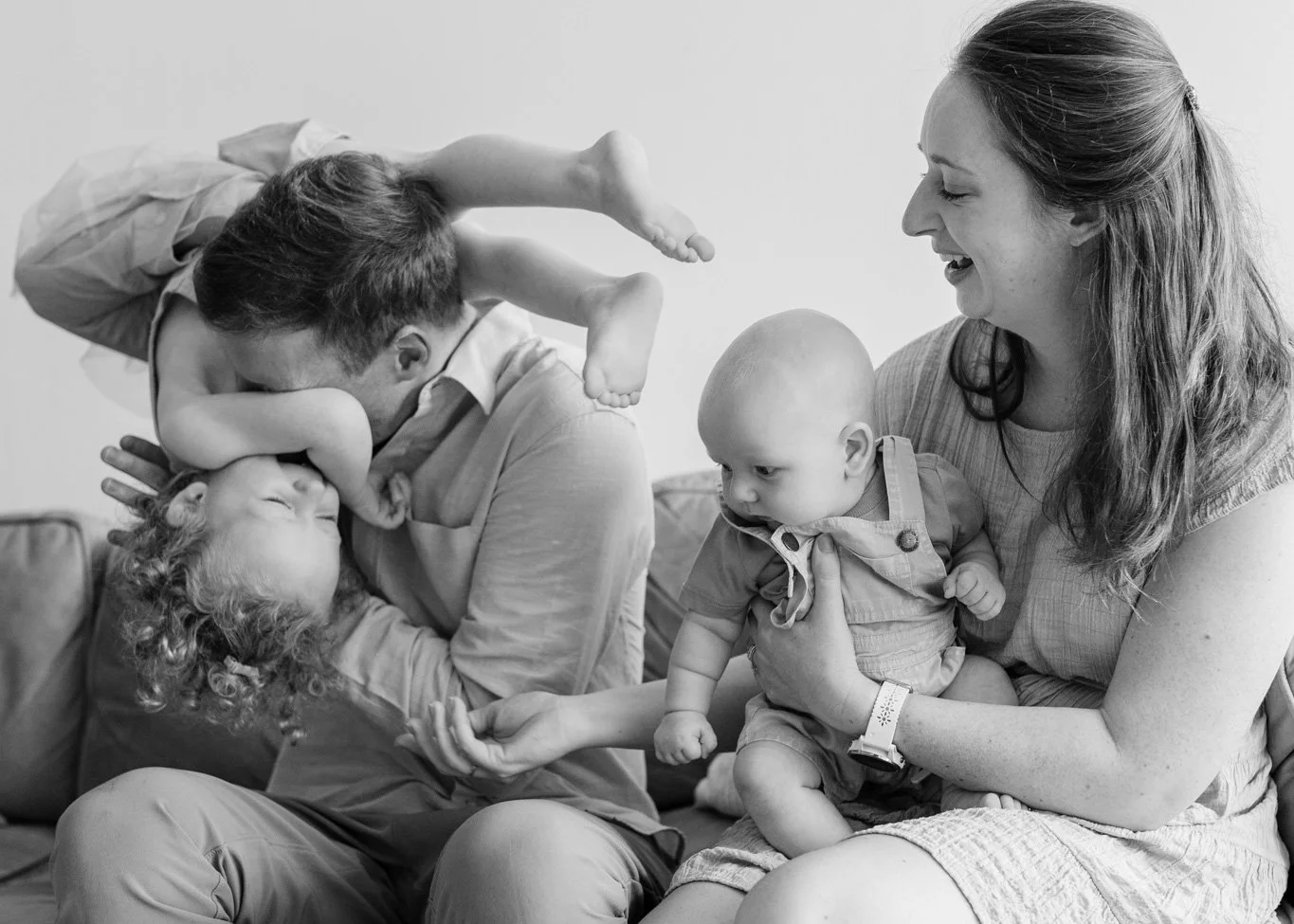 A lifestyle newborn session doesn't have to take place within the first few weeks because the focus is on capturing the family together with their new bundle of joy, rather than posing the newborn.